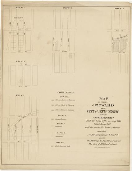 Map of Property in 12th Ward of City of New York of which Archibald Watt Held Legal Title in July 1838, Whilst James Watt held the Equitable Benefits Thereof Covered by Two Dry Mortgages of A. Watt to
