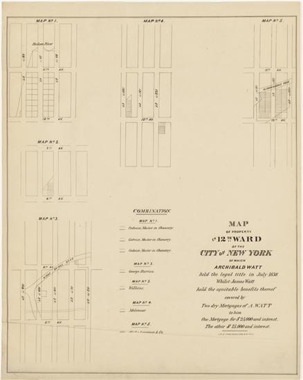 Map of Property in 12th Ward of City of New York of which Archibald Watt Held Legal Title in July 1838, Whilst James Watt held the Equitable Benefits Thereof Covered by Two Dry Mortgages of A. Watt to