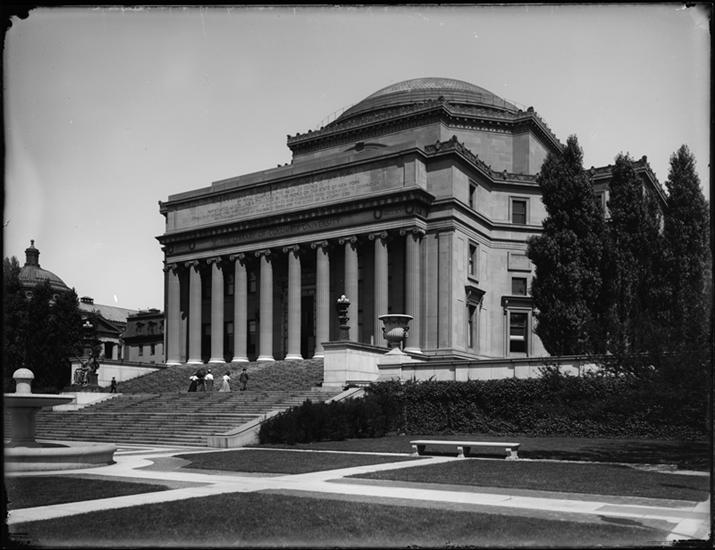 Fountain and stairs in front of Low Memorial Library at Columbia University.