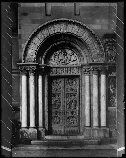East 44th Street at the corner of Madison Avenue. St. Bartholomew's Protestant Episcopal Church, detail of south doors.