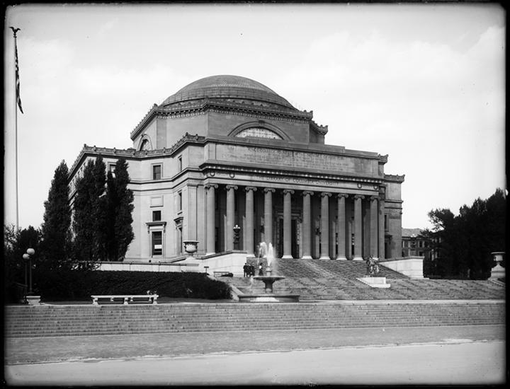 Fountain and stairs in front of Low Memorial Library at Columbia University.