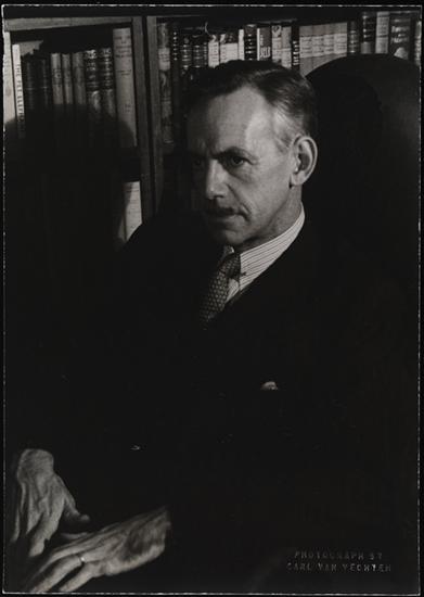 In ink, on verso: Eugene O'Neill / VI e 42 / October 10, 1933 / 55; stamped on verso: PHOTOGRAPH BY CARL VAN VECHTEN / 101 CENTRAL PARK WEST / CANNOT BE REPRODUCED WITHOUT PERMISSION; embossed on rect