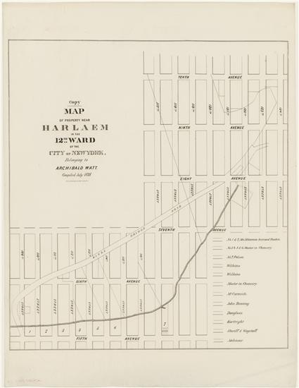 Copy Map of Property Near Harlaem in the 12th Ward of the City of New York Belonging to Archibald Watt