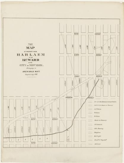 Map of Outlying Lots and Parcels of Land Near Harlem in the 12th Ward of the City of New York Belonging to Archibald Watt