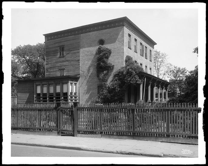 East 124th Street between Third Avenue and Lexington Avenues. Residence of Col. Kopper. Oldest house in Harlem. Fireplace with Dutch tiles