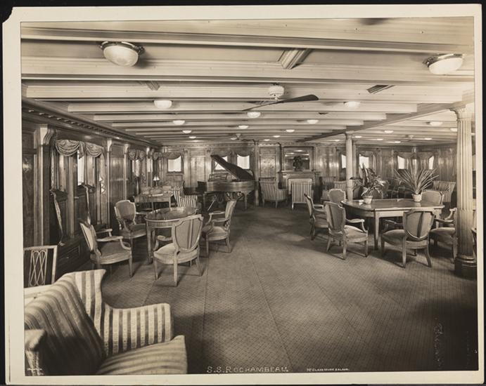 French Line, S.S. "Rochambeau", Tourist Third Class Interior, Smoking Room.