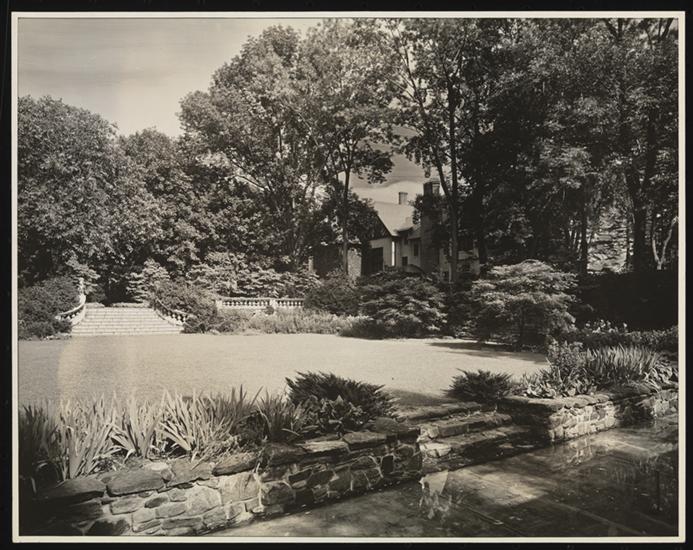 A garden and the house on the J.H.R. Cromwell estate (formerly George Gould's) at Manursing Island, Rye, N.Y.