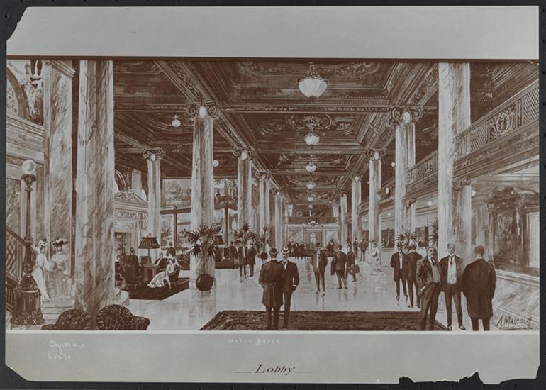 Hotel Astor, Broadway & 45th St., Interior, Cloak room and corridor.