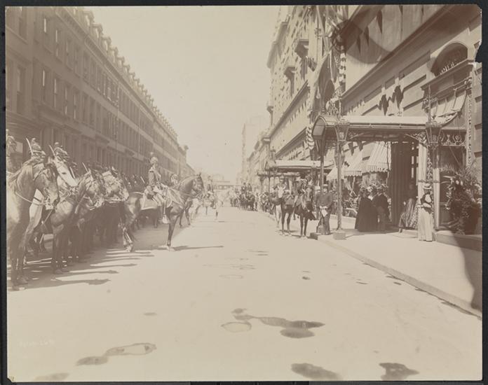[Governor's Staff Near Hotel Waldorf-Astoria, Fifth Avenue & 34th Street, Awaiting Li Hung Chang.]