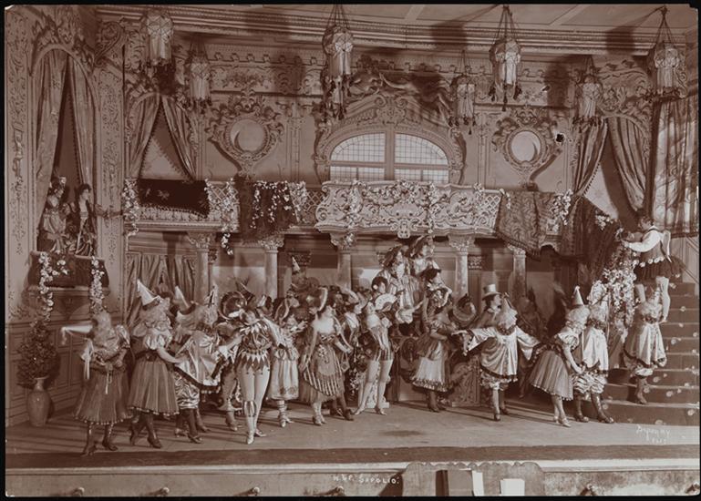 A scene from Weber and Fields' burlesque of Clyde Fitch's translation of Alphonse Daudet's "Sapho" called "Sapolio," a "Clean travesty of 'Sapho'" presented at the Weber and Fields Music Hall in 1900.