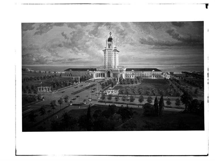 Broadway at the corner of West 34th Street. Hotel McAlpin, watercolor rendering by Hughson Hawley, 1910.