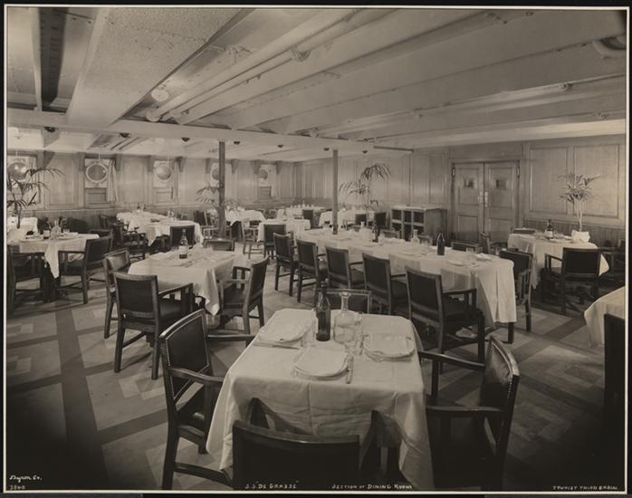 French Line, S.S. "De Grasse" Tourist Third Cabin, Interior, Section of Dining Room.