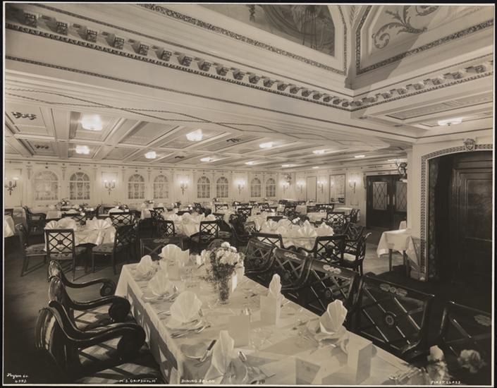 French Line, S.S. "Chicago" Interior, Dining Salon, First Class.