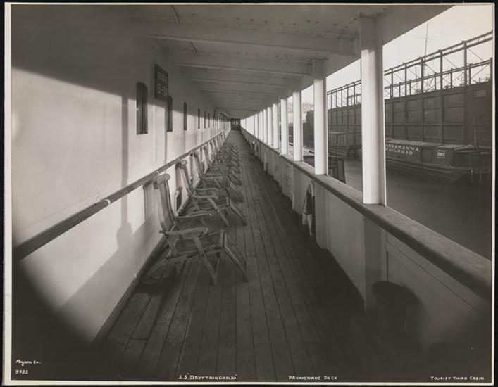 Swedish American Line, S.S. "Stockholm", Interior, Third Class Promenade Deck.