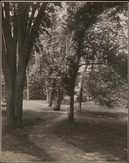 Dirt paths meandering through trees at the Kent Place School for Girls in Summit, New Jersey.