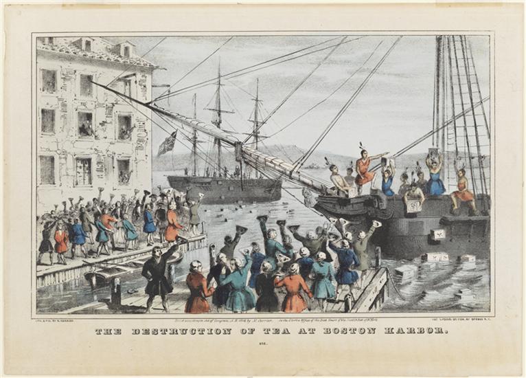 Boston Tea Party. Three cargoes of tea destroyed Dec. 16, 1773.