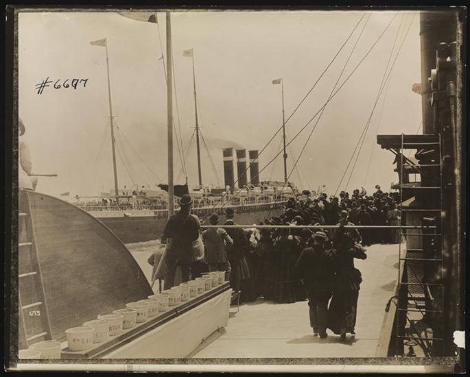 American Line, S.S. "New York", Group Waving to Passengers on Boat.