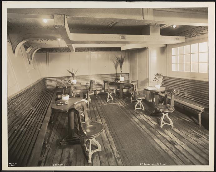 French Line, S.S. "France", Pier 57 North River, Interior, Third Class, Smoking Room.