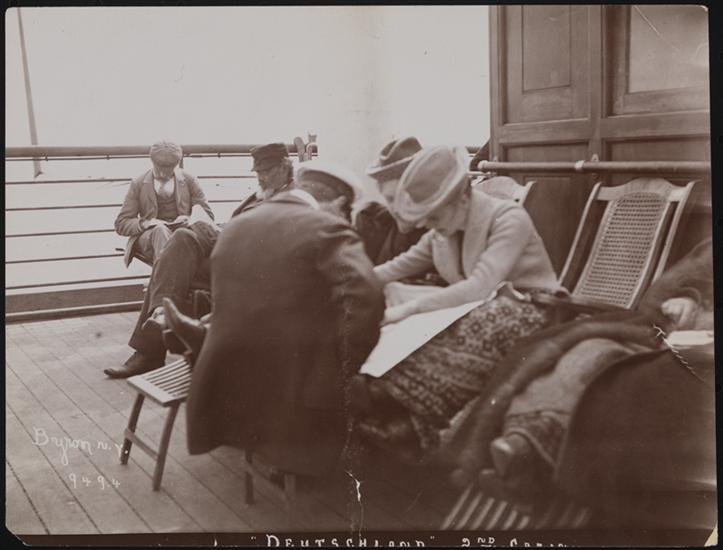 Passengers reclining on a deck of the S.S. "Deutschland".