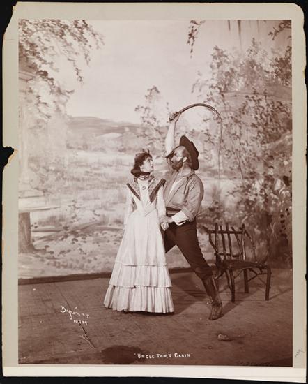 A scene from William A. Brady's production of "Uncle Tom's Cabin" from Harriet Beecher Stowe's novel, presented at the Academy of Music in 1901 and featuring Wilton Lackaye as Uncle Tom and Theodore Roberts as Simon Legree.