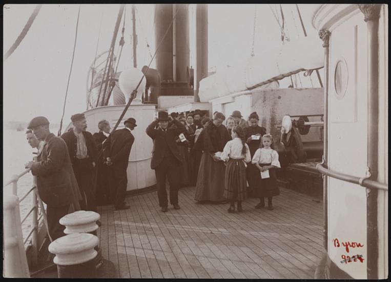 Steerage passengers passing the doctor on board the S.S. "Ethiopia".
