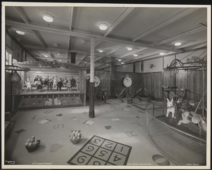 French Line, S.S. "Ile de France", First Class, Interior, Gymnasium.