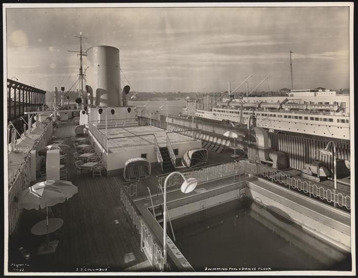 Hamburg American Line--North German Lloyd, S.S. "Columbus" Pier 88 N.R., Exterior, Dance Floor on Boat Deck.