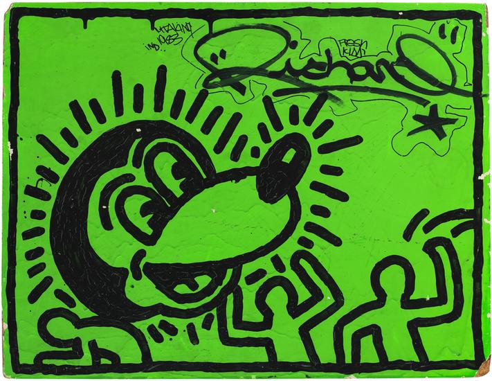 [INSIDE FRONT COVER AND FIRST PAGE OF KEITH HARING'S BOOK.]