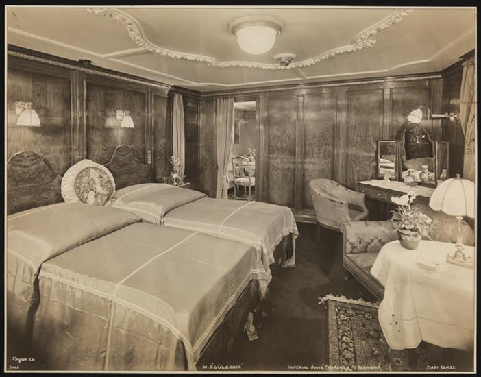 M.S. "Vulcania" Pier 84 North River, First Class, Interior, Suite de Luxe "Tivoli".