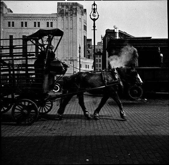 Horse and Wagon on the Corner.