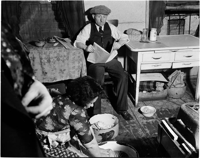 Kitchen Interior, Woman Ironing and Man with Small Child