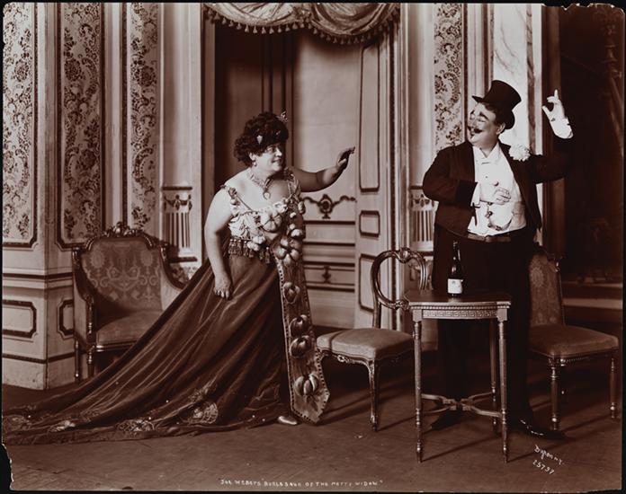A scene from Weber's Burlesque of the Henry W. Savage production of Lehar's "The Merry Widow," presented at Webers Theatre in 1908.