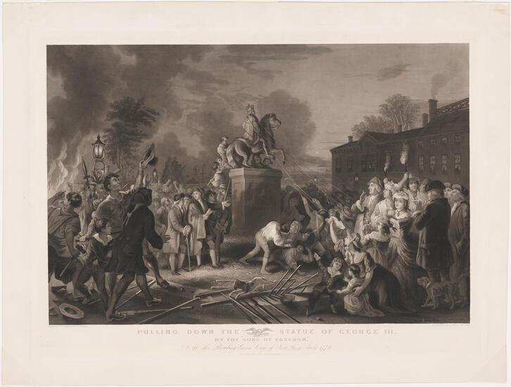 [Patriots pulling down the statue of George III in Bowling Green.]