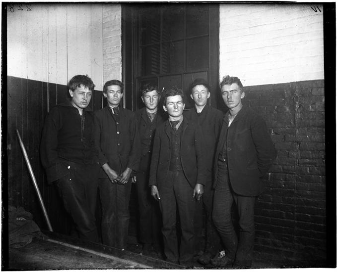 Police Station Lodging Room 4. Oak Street Station, Six boys picked out of the draft in the men's lodging room.