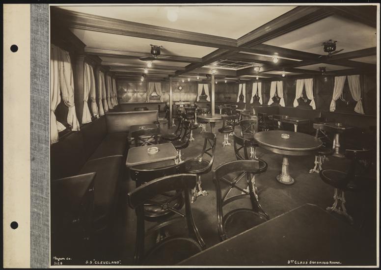 Swedish American Line, S.S. "Drottningholm", Third Class, Interior, Smoking Room.