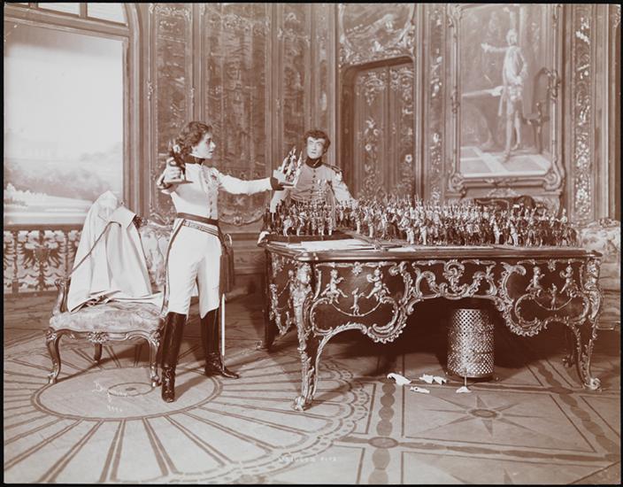 "'L'Aiglon' Act II" on neg. | "Scene from/L'Aiglon/1900" in pencil on verso. | Photographer's stamp on verso, including credit line and permission to publish.