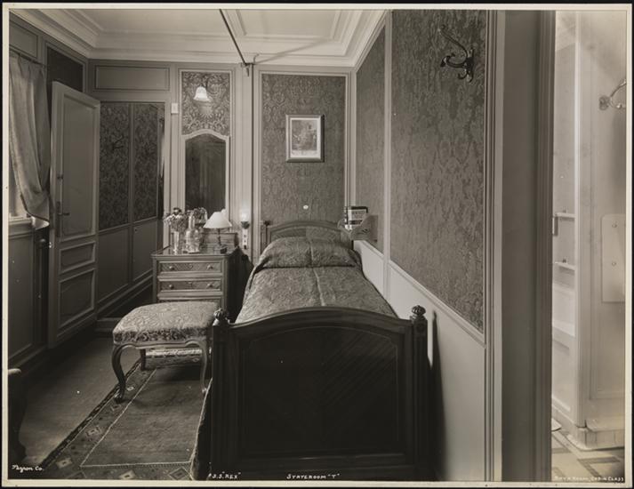 Italian Line, S.S. "Rex", Pier #59, N.R., First Class, Interior, Stateroom "T".