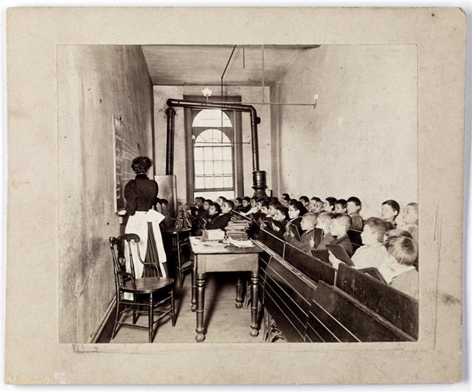 East Side Public Schools 2. Class without desks in the Essex Market School.
