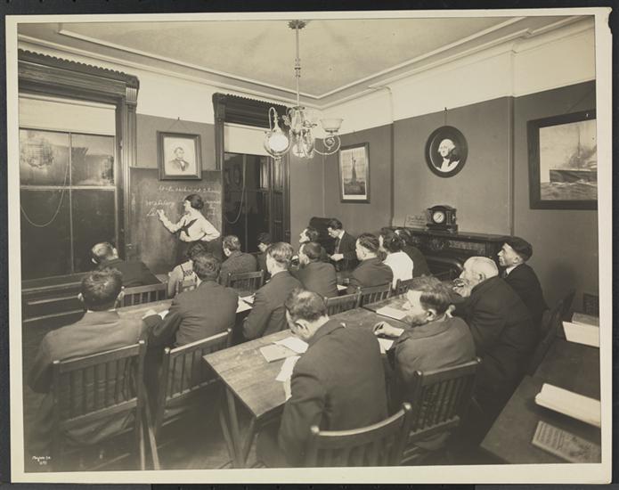 Interior, Group, Rodeph Sholom Sisterhood, 157 E. 94, Women's Americanization Class.