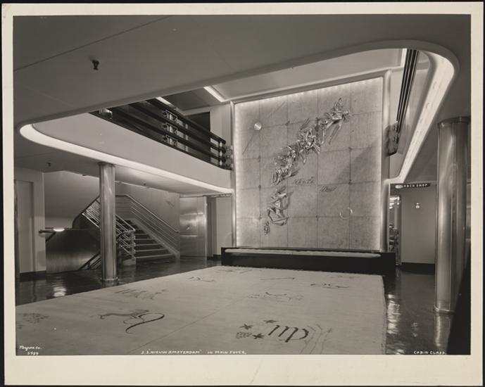S.S. "Nieuw Amsterdam", 5th Street, Hoboken, N.J., Tourist Class, Foyer on Promenade Deck.