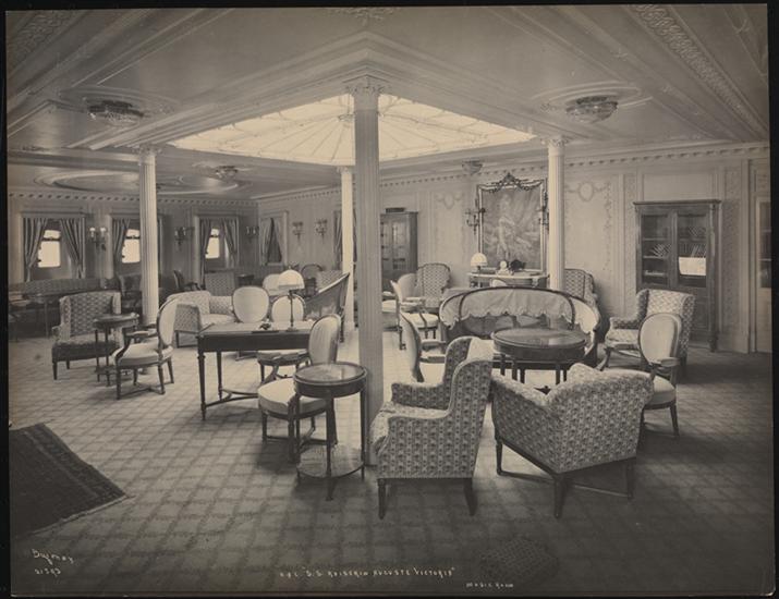A music room aboard the S.S. "Kaiserin Auguste Victoria".