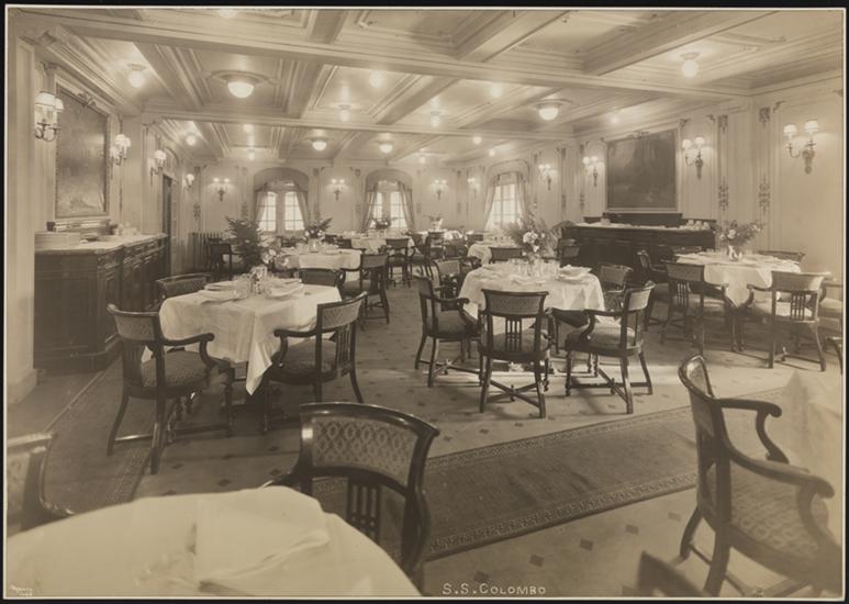 Italia-America Shipping Corp., S.S. "Colombo", Pier 97 North River, Third Class Dining Room.