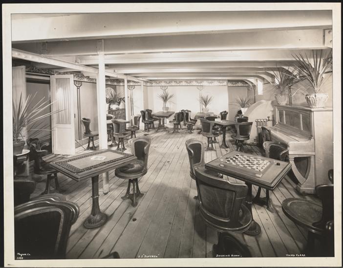 French Line, S.S. "Roussillon" Pier 99 North River, Interior, Third Class Smoking Room.