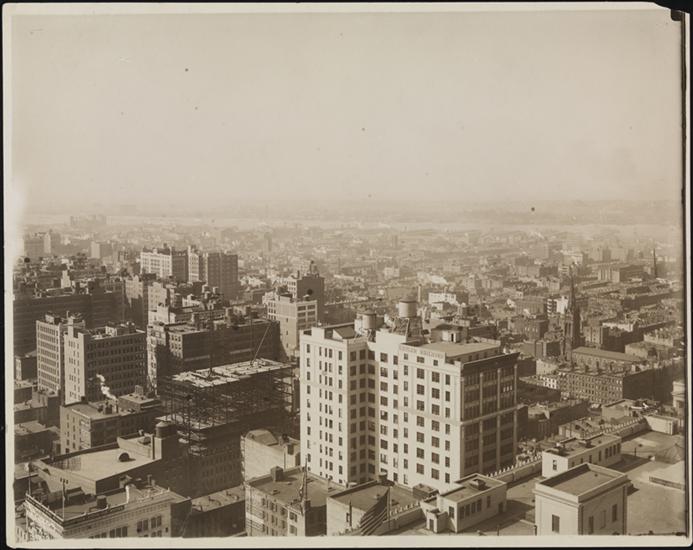 From a midtown rooftop looking southwest over Manhattan toward the Hudson River.