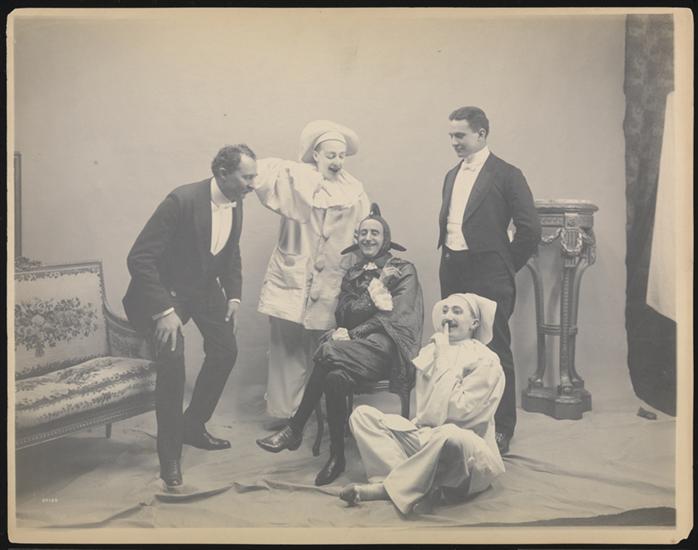 Group portrait of five unidentified men at the James Hazen Hyde Ball, January 31, 1905.