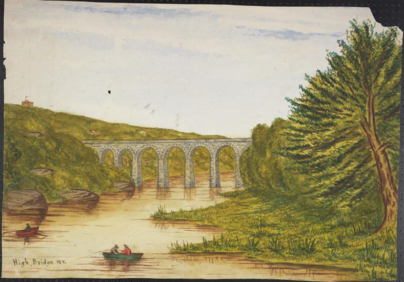[Harlem River Speedway and Washington Bridge, with High Bridge in background.]