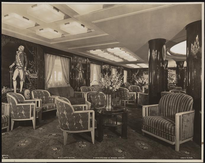 French Line, M.S. "Lafayette" Third Class-Forward, Interior, Salon.