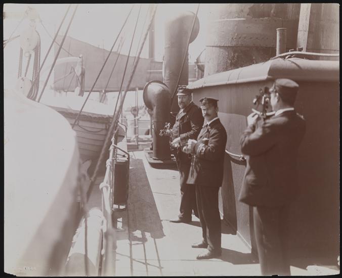 Seamen with navigation equipment aboard the S.S. "Circassia".