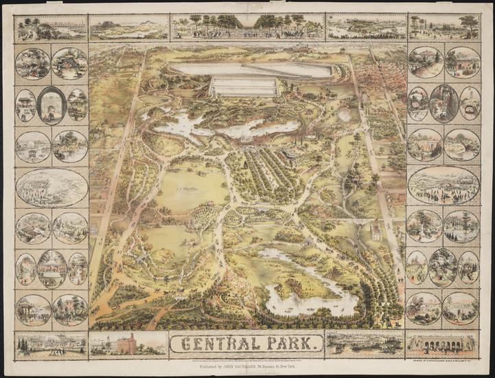 Central Park, The Reservoir. Birds-eye view looking west from East 98th Street and Fifth Avenue apartment