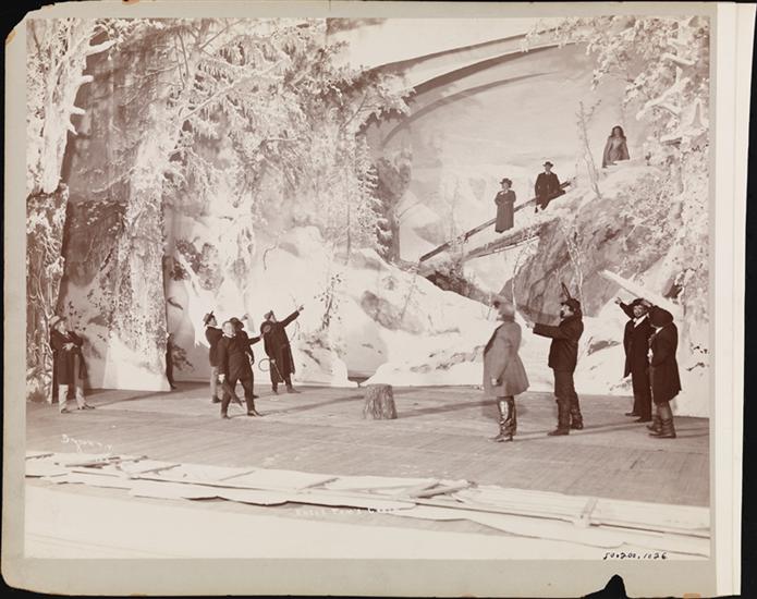 A scene from William A. Brady's production of "Uncle Tom's Cabin" from Harriet Beecher Stowe's novel, presented at the Academy of Music in 1901 and featuring Wilton Lackaye as Uncle Tom and Theodore Roberts as Simon Legree.